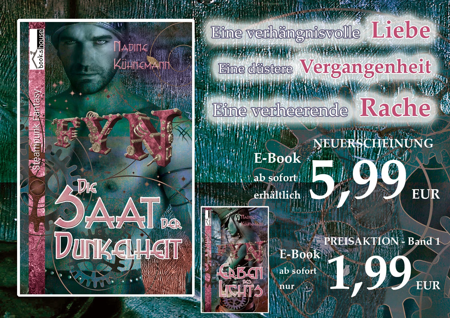 Zum Erscheinungstermin von "Die Saat der Dunkelheit", dem zweiten Teil von Nadine Kühnemanns Fyn-Dilogie, gibt es den ersten Band "Erben des Lichts" als E-Book-Deal zum Aktionspreis für nur 1,99€. Verfügbar in allen geläufigen Shops.